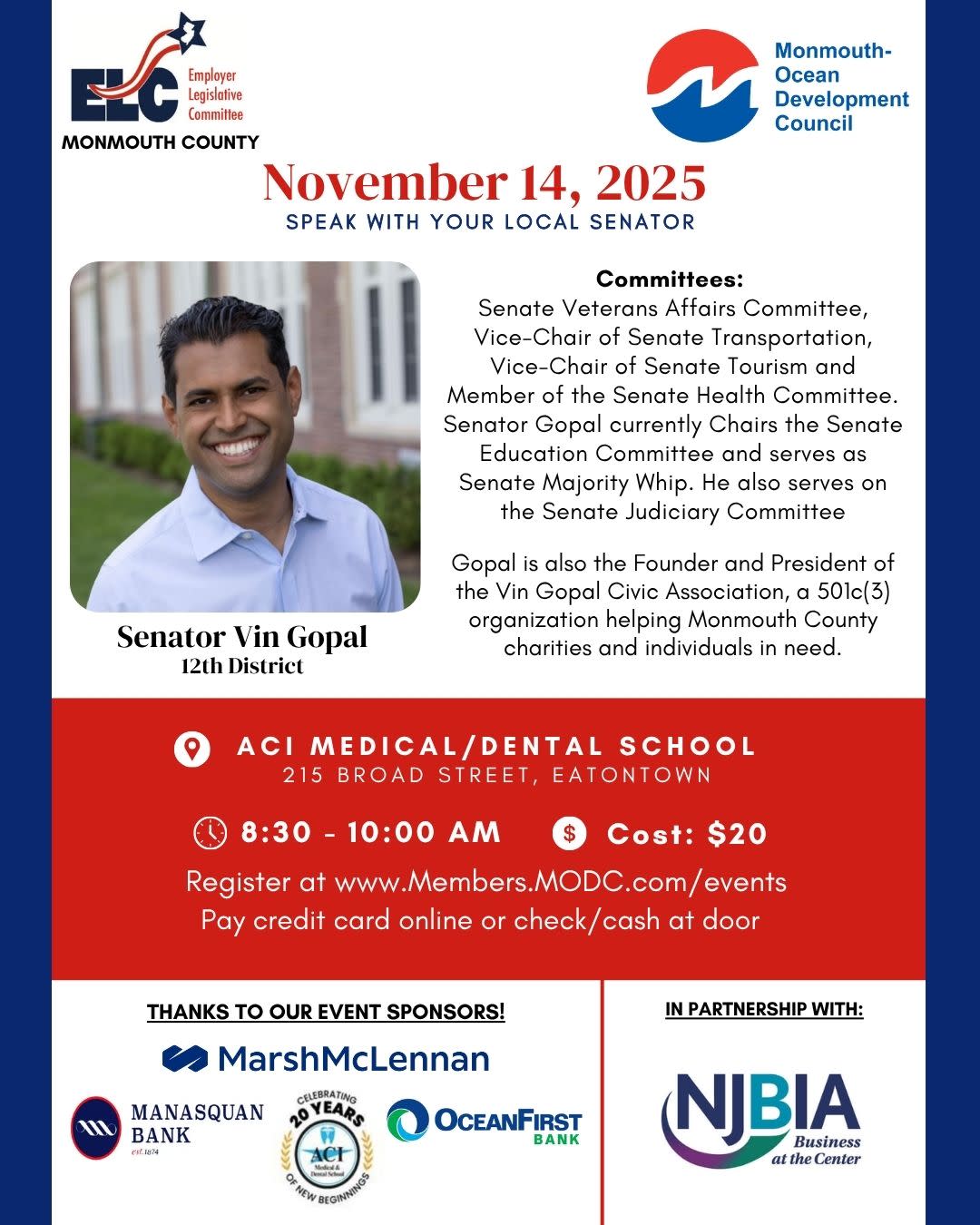 Senator Vin Gopal currently chairs the Senate Education Committee and serves as Senate Majority Whip. He also serves on the Senate Judiciary Committee. Gopal is also the founder and president of the Vin Gopal Civic Association, a nonprofit organization helping Monmouth County charities and individuals in need.